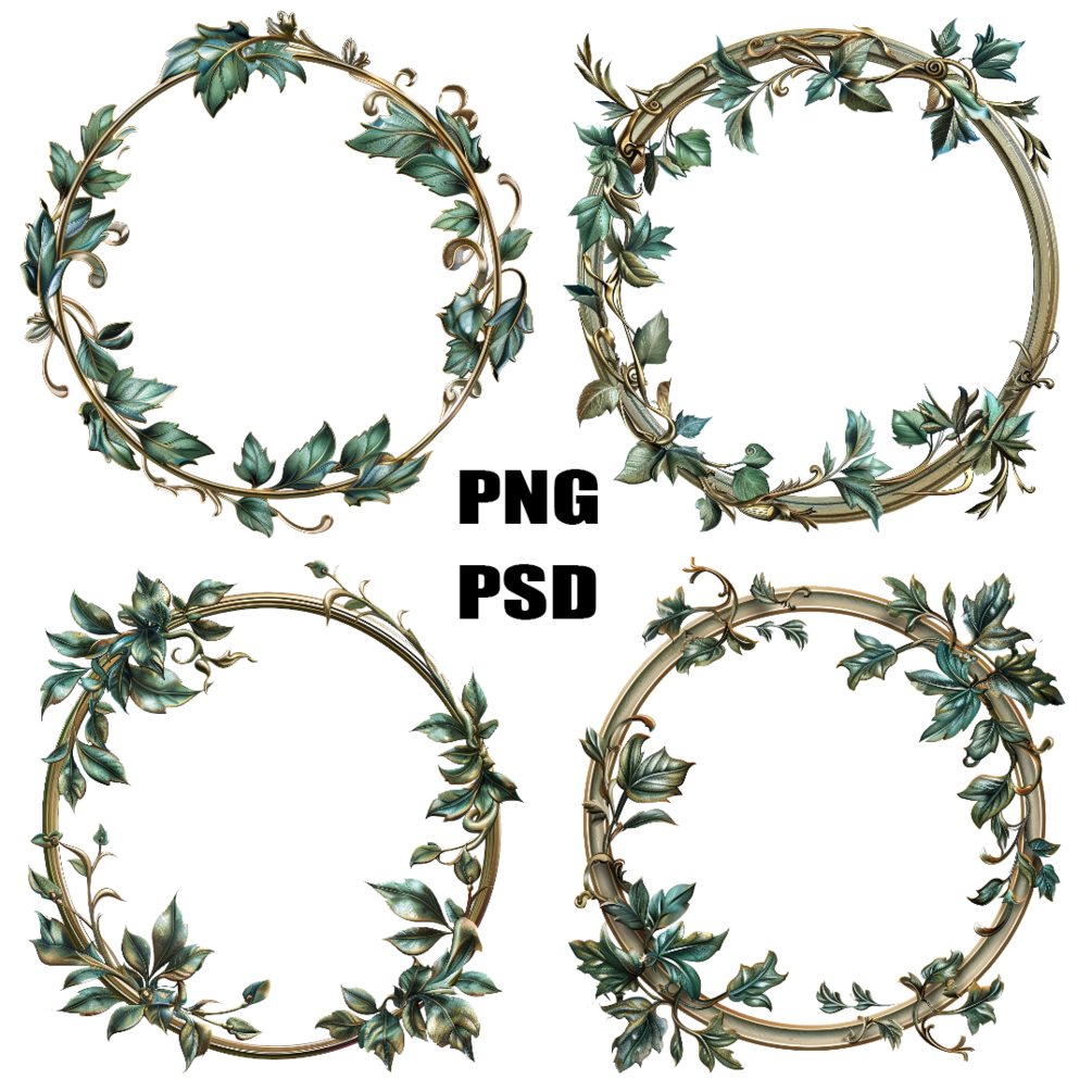 Pack of 4 DnD frames, fantasy, leaf, round, userpic frame, PNG, PSD